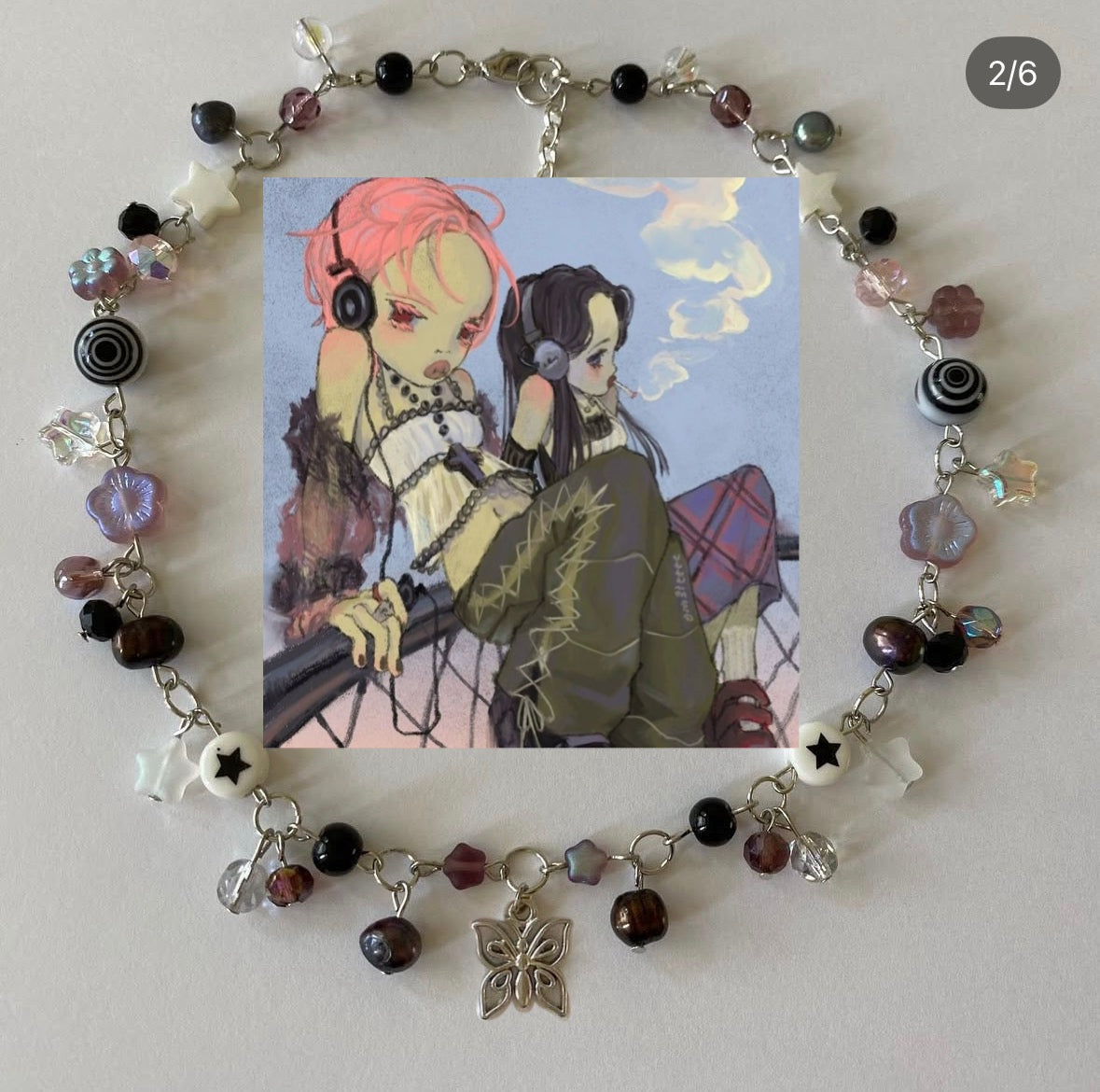 custom long complex necklace with an adjustable chain (black, purple)